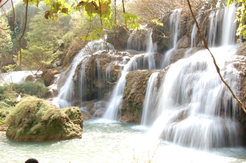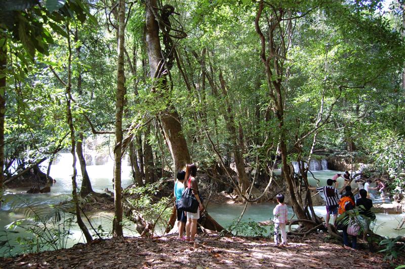 วัยสะรุ่นกำลังเล่นน้ำที่ น้ำตกทีลอซูไหลผ่านลงมาเป็นแม่น้ำสายต่างๆ แม่กลอง