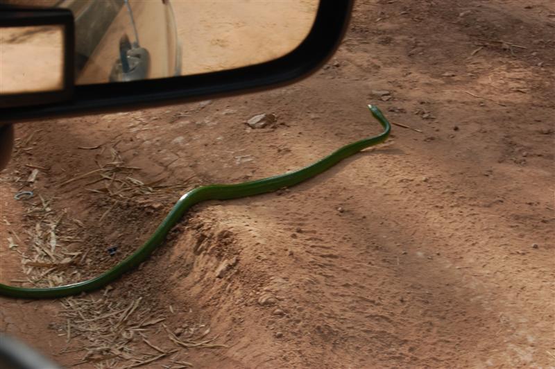 นี่คือผู้ที่ไม่อยากจะให้ผมกลับออกไปที่พัก จอดขวางทางเลย รถทั้งขาไปขากลับต้องจอดรอกันนานพอควร ไล่ก้อไม่ไป งูเขียวหางใหม้ตัวใหญ่มากๆเพิ่งเคยเจอใหญ่ขนาดนี้ไล่ปาหินก้อไม่ไป ผมต้องเอารถพุ่งเข้าไปในป่าข้างทาง ไม่งั้นไม่ได้ออกมาแน่ๆ