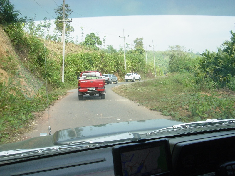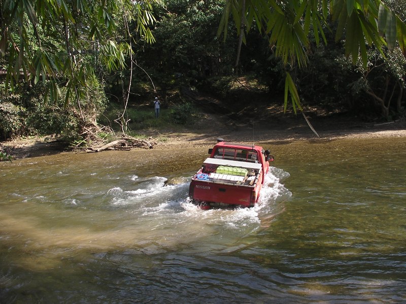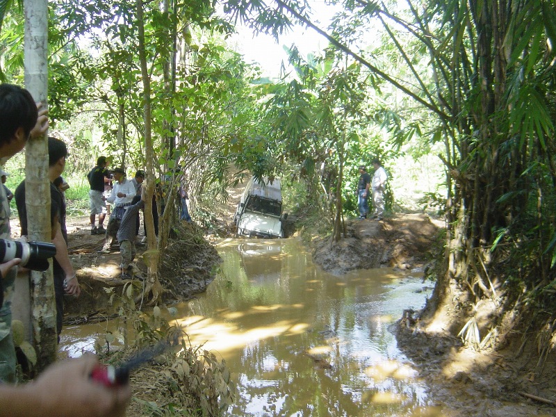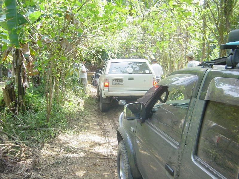 เนื่องจากเส้นทางเข้าเกาะสะเดิ่ง ระดับน้ำยังอยู่ระดับสูงพอสมควร ( โดยเฉพาะ terrano น้ำเข้ารถแน่ๆ ) ประกอบกับสภาพเส้นทางก็วิบากมากกว่าที่คาดการณ์เอาไว้มาก และทราบว่าเส้นทางที่เราจะไปยังอุ้มผางมีการสไลต์ตัวของถนนที่ได้ลงขันทำเอาไว้ ทำให้ไม่สามารถผ่านไปได้ แน่ๆ
