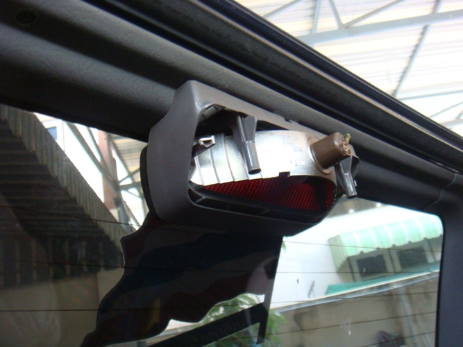 ตัวนี้ต้องเจาะประตูหละ ไงก็เล็งตำแหน่งกันให้ดีก่อนเจาะน่ะครับทั้งหมด 6 รู แต่ผมเจาะแค่ 4 รูยึดน๊อต ตามด้วยเดินสายไฟจากตำแหน่งเดิมผ่านประตูท้าย 1 เส้น เสร็จไปอีกอันตัวนี้กว่าจะเล็ง กว่าจะเดินสายเสร็จ 2-3 ชม.