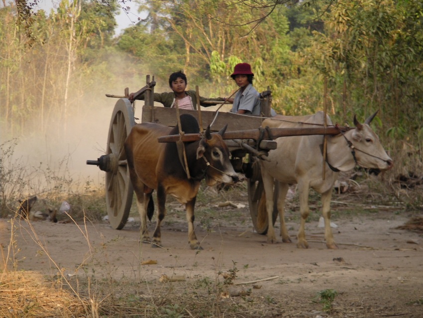 รีบออกจากหมู่บ้านมามาจอดรอสวนกับเกวียน 3เล่ม จราจรติดขัด