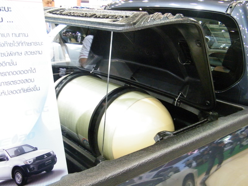 วางถัง CNG บนกระบะ มีที่ครอบเรียบร้อยดีครับ..