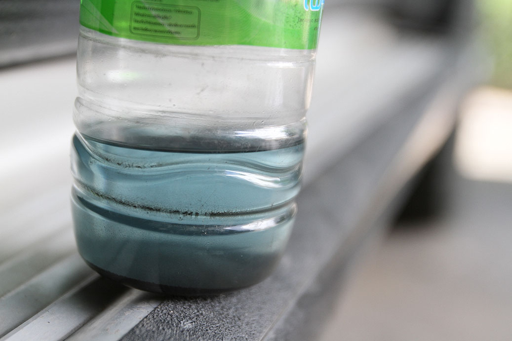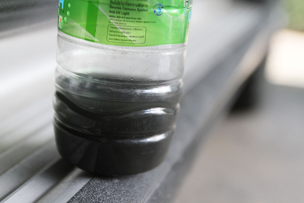 และเมื่อเทน้ำมันที่กรองเบนซินดักเอาไว้ออกมาก็จะเห็นเหมือนในภาพนี้แหละครับ