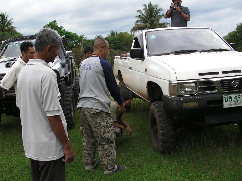 เฮียธงโวยออกมา เฮ้ยกบ......แหวนล๊อคหัวเพลามันหาย เพลามันเลยวิ่งไปวิ่งมาใด้ มันทำกันยังไง งานเข้าแล้ว ทั้งทริป เสียบหลุดเสียบหลุด 5-6 ครั้ง ดีๆทั้งนั้น คุณบอยเอ่ยปากว่า "สงสัยนี่ป็นวิธีใส่เกียรืโฟว์อีกแบบ" (คุณหนึ่งครับ รองเท้าดีๆทั้งนั้นครับต้องไปลองเอง เบอร์ใครเบอร์มันครับ พี่สมอลรับประกัน)