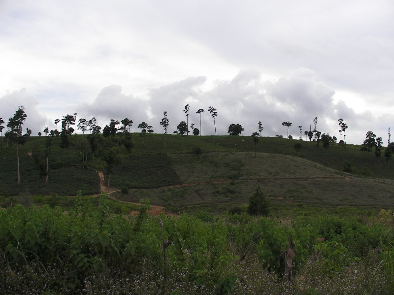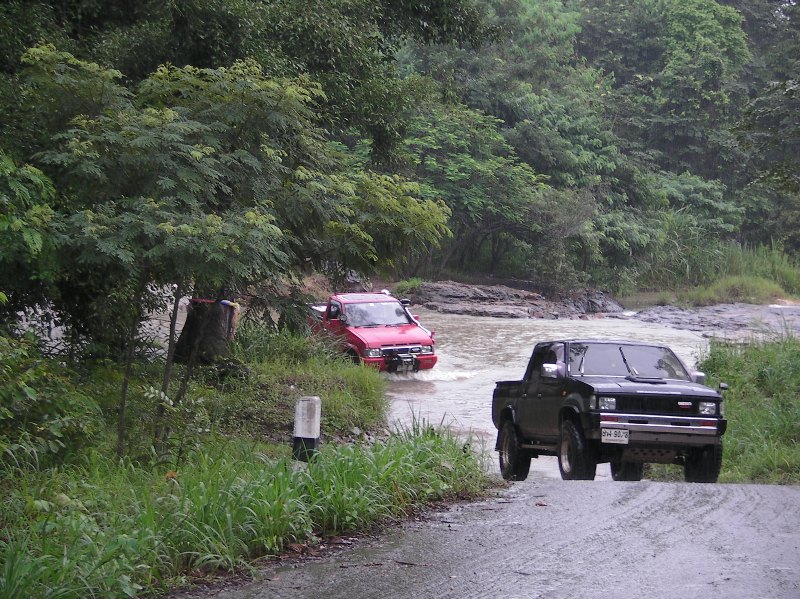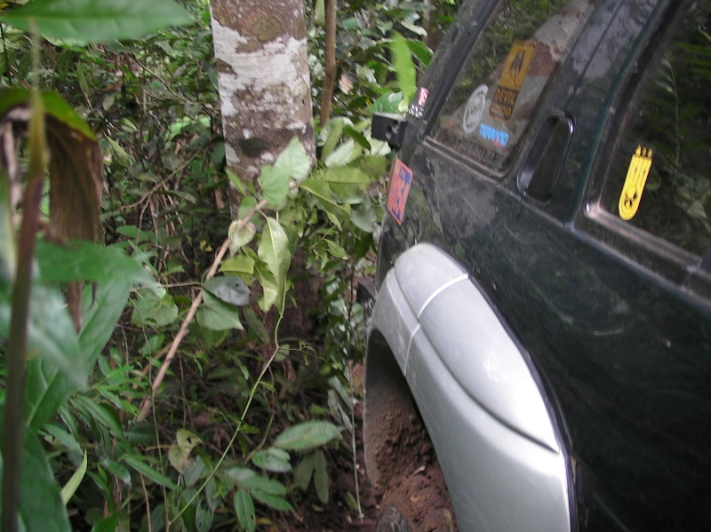 เราวิ่งออกจากพื้นที่มาเรื่อยๆ มีเสียงทางวอมาอีก ระวังตอไม้กลางถนน ระวังๆๆๆ พอวิ่งมาถึงตกใจ เป็นต้นไม้เส้นผ่าศูนย์กลางประมาณ 20-30 ฃม ถูกตัดสูงจากพื้นประมาณ 1 เมตร อยู่ในพุ่มไม้เส้นผ่าศูนย์กลาง1.5 เมตร กลางทางเรียบ มองไม่เห็นตอก็แล้วกัน ถ้าเสยเข้ารับรองหม้อน้ำทั้งใบ เหมือนชนเสาไฟฟ้าเลยครับ ดีที่ตาเจ้ยจำทางแม่น เลยรอดมาได้หมด