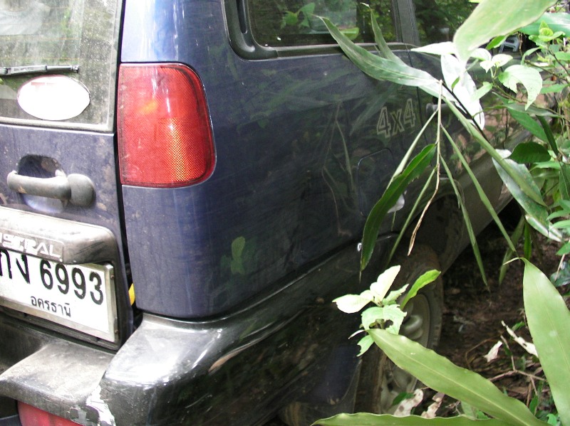 แล้วก็จากออกมา สังเกตุเห็นว่าตอนกระแทก มีกิ่งไม้และใบไม้ไปรองใว้