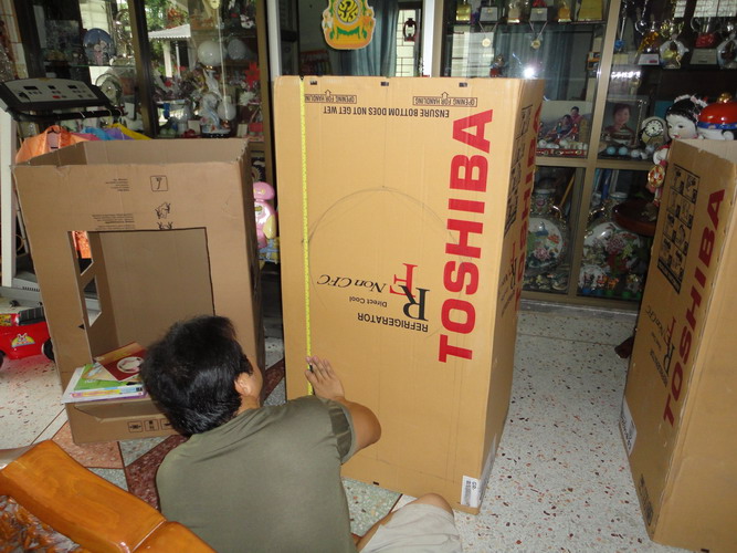 แต่ก็ดีนะครับ ลูกสาวชอบมากๆ....ช่วยออกแบบให้อีกต่างหาก...อย่างวันนี้ ช่วงเช้าผมทำงาน...แฟนผมตอ้งทำงานบ้าน...เอาเครื่องครัวพลาสติกเด็กเล่น ชุดนึงไปไว้ในบ้านกล่อง...ลูกสาวผมก็เล่นอยู่ในนั้นคนเดียวไม่กวนเลย