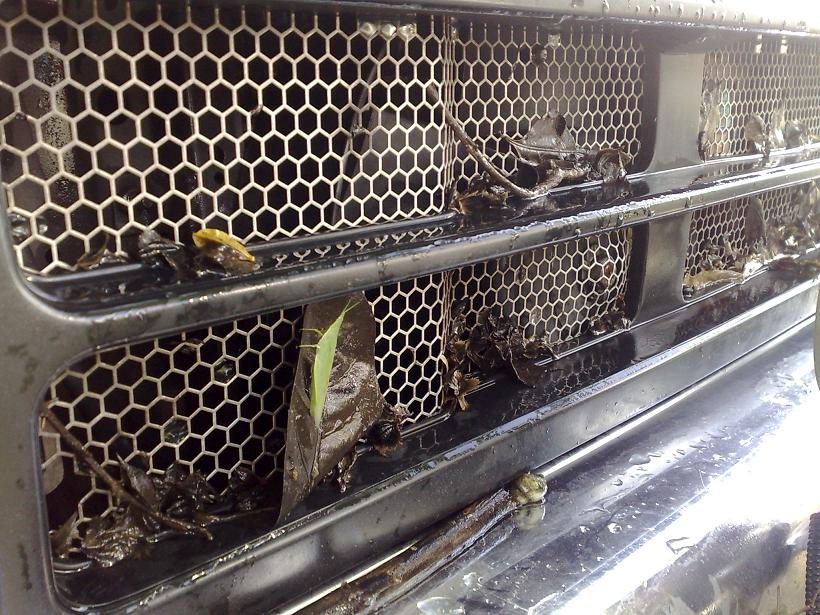 หน้ากระจังลายรังผึ้งสุดฮิต แปรสภาพเป็นฟลินเตอร์ กรองใบไม้แห้งจากบ่อน้ำแถมมีตั๊กแตนมาเกาะอยู่ด้วย