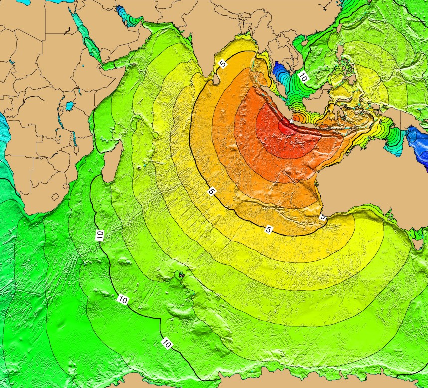 ตะวันออก ขนาด ๗.๖ ตามมาตราริคเตอร์ คาดว่าจะเกิดสึนามิขนาดเล็กในบริเวณใกล้จุดศูนย์กลาง จึงให้
