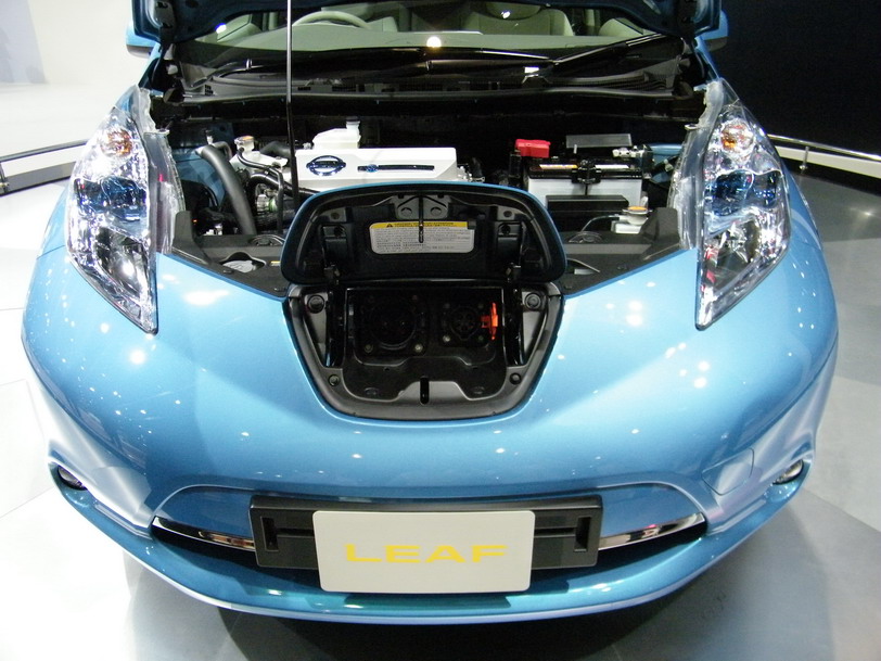 เมื่อเปิดที่หน้ากระจัง ตรงตรา Nissan ขึ้นมา เราก็จะพบกับ ขั้วต่อไฟฟ้ากระแสสลับเข้ารถเลยครับ..