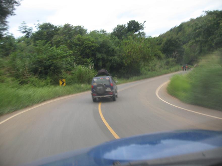 เสร็จแล้วไปเติมแก๊สที่บึงสามพัน แล้วเลี้ยวขวาไปทางชัยภูมิ มีอยู่สามโค้ง คือโค้งฃ้าย-โค้งชวา