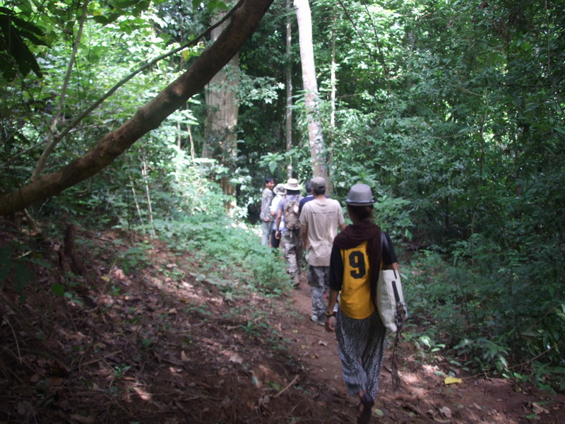 มาถึง มี่จอดรถ เพื่อเดินเท้าต่ออีก ไม่ถึงกิโล เป็นทางเดิมเลียบทางน้ำ ทางเจ้าหน้าที่แนะนำให้ใส่รองเท้าผ้าใบจะดีที่สุด เพราะ การปีนป่ายจะง่ายไม่ลื่น
