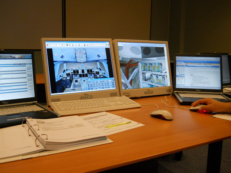 อีกจอนึง ( จอใหญ่ขวา ) เป็นจอ Simulator แบบ Visual Aircraft ให้เราสามารถ เดินเข้า-ออกเครื่องบิน รวมทั้งสามารถถอด component เครื่องบินได้จริงๆ
