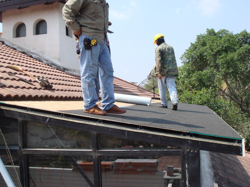ปูแผ่นหลังคาทีละแผ่น..ไปเรื่อยๆ...