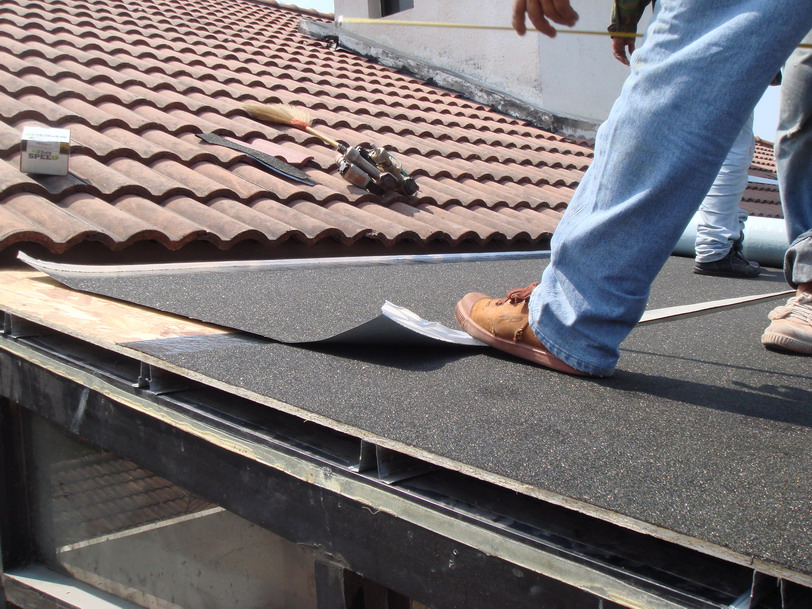 ปูด้วยแผ่นยางกันซึมก่อน...