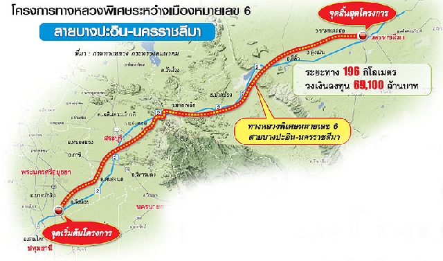 แหล่งข่าวจากกรมทางหลวง (ทล.) เปิดเผย "ประชาชาติธุรกิจ" ว่า โครงการทางหลวงพิเศษหมายเลข 6 สายบางปะอิน-สระบุรี-นครราชสีมา ระยะทาง 196 กม. ใกล้เป็นจริงแล้ว ล่าสุดอยู่ระหว่างเสนอร่าง พ.ร.ฎ.เวนคืนที่ดินให้คณะรัฐมนตรี (ครม.) อนุมัติ หลังจากผ่านขั้นตอนคณะกรรมการกฤษฎีกาเป็นที่เรียบร้อยแล้ว คาดว่าจะออกประกาศในราชกิจจานุเบกษาได้ประมาณสิงหาคมนี้