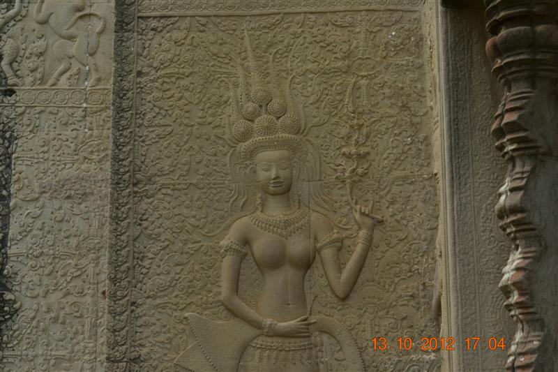 นางอัปสรยิ้มเห็นฟัน มีภาพเีดียว ทั้งหมดของ นครวัด ประตูทางเข้าชั้นในตรงกลางด้านขวามือ