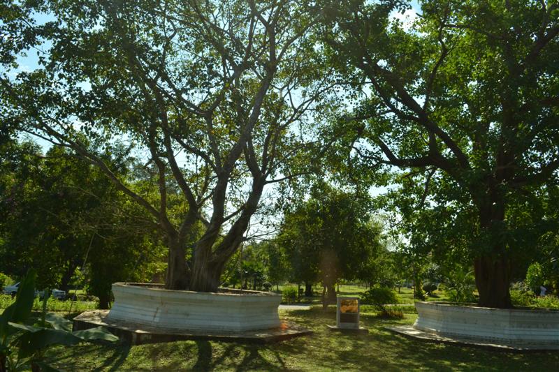 ต้นโพธิ์ ในหลวงและราชินี ทรงปลูกไว้เมื่อปี 2500 ตอนพายุุนากีสถล่ม ต้นโพธิ์สองต้นนี้ไม่ได้รับความเสียหายแต่อย่างใด ส่วนบริเวณรอบๆภายในวัด ไม่เหลือแม้แต่ซาก