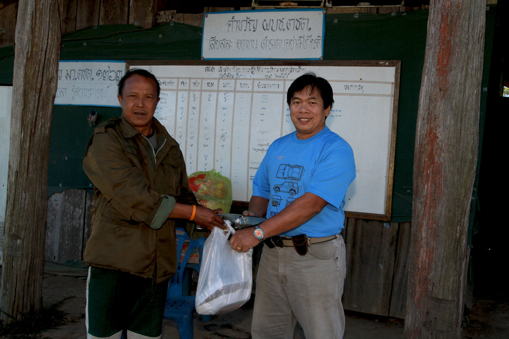 หลังทานอาหารเช้าก็เอาของไปมอบให้พี่ๆ ตชด.