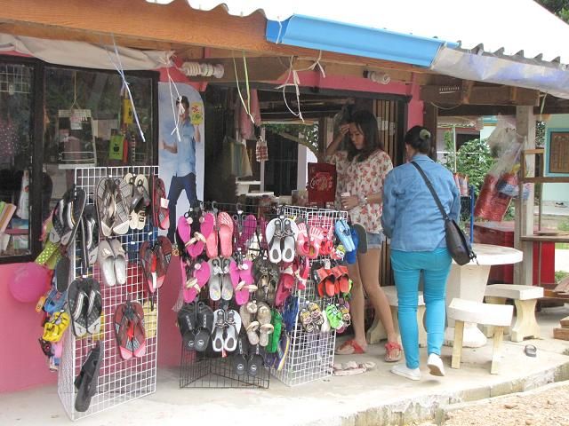 มาถึงบ้านกลางเกาะ คล้ายๆกับเซ็นเตอร์พอยต์บ้านเราอะน้ะ จอดถามทางไปสะพานปลาที่ยาวที่สุดในเกาะลิบง ผู้จัดการให่ญก็เลยจะซื้อรองเท้าแตะซะอีกคู่สงสัยเอาไว้เป็นที่ระลึกมั้ง