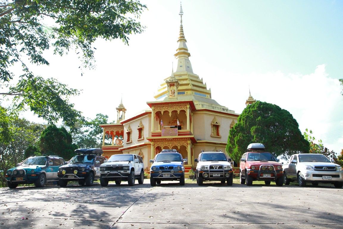 วัดแรก คือ วัดป่าโพนเพา จัดแถวถ่ายรูปรถและคน