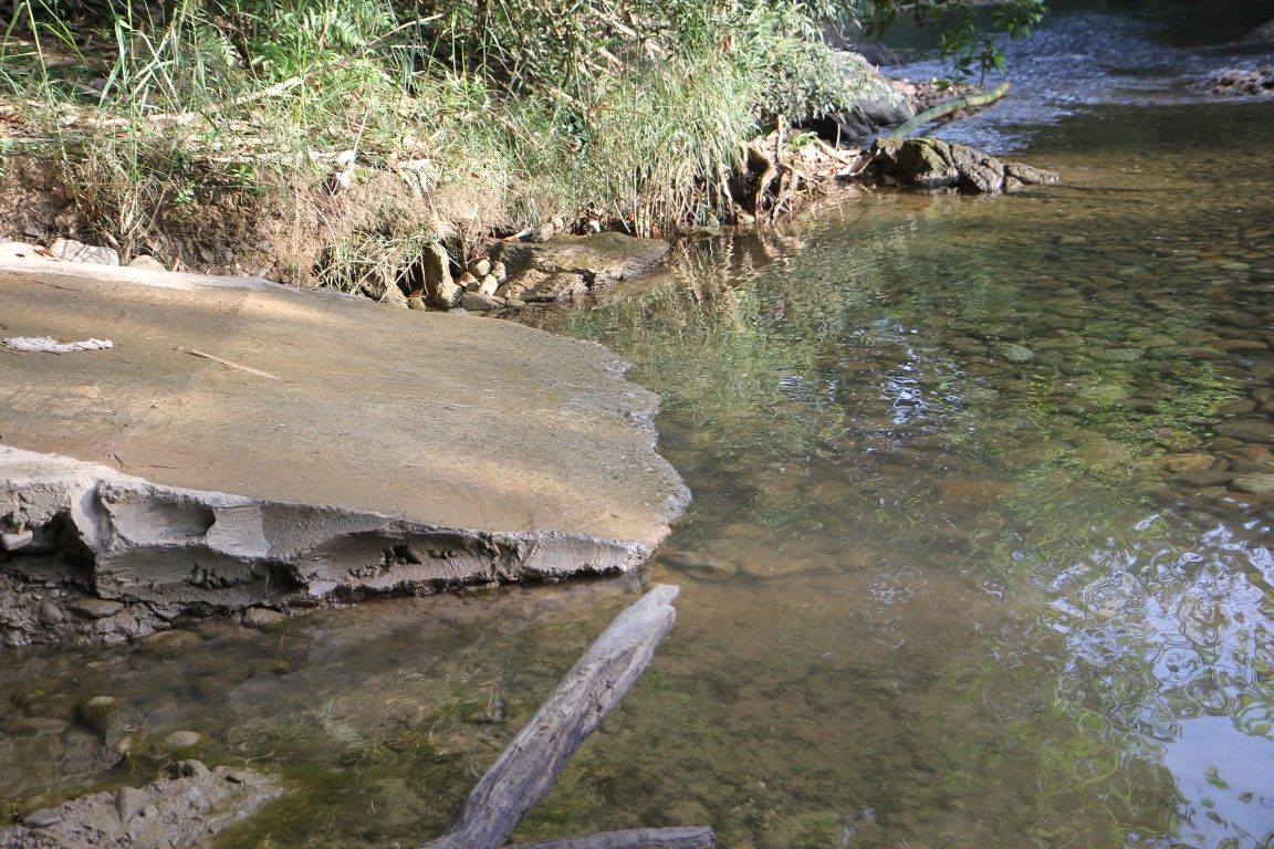ถนนปูนสิ้นสุดก่อนลงน้ำ เลยขอเรียกว่าเนินป้ายทะเบียนหลุด เพราะขอบปูนนี้เอง
