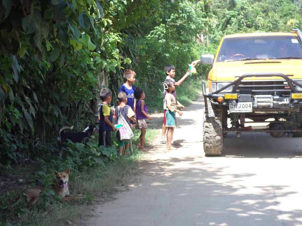 คุณโก๋แจกขนมน้อง ๆ เด็ก ๆ ตลอดทางครับ