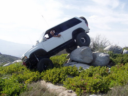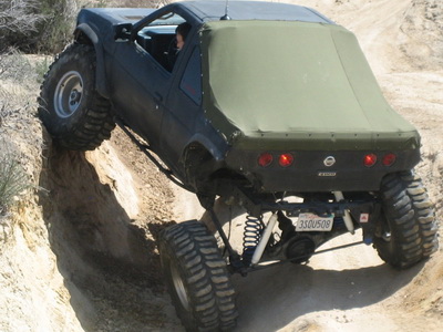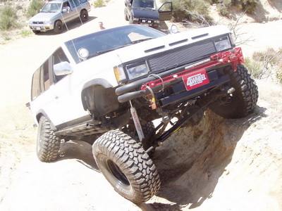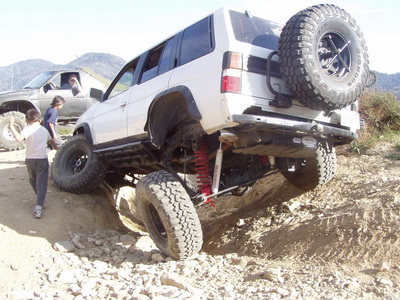 Being tired of paying for replacement components, the obvious solution to him was to put in a solid front axle and enjoy the wheel travel and robustness benefits associated with it. While most of us dream about it and watch Toyota owners do it, he made it happen on his Nissan. His truck is now a highly capable rig, regularly seen on tough trails along with other heavily modified Jeeps and Toyotas.