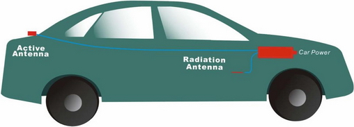 อุปกรณ์กระจายสัญญาณ GPS ภายในรถยนต์จะมีเสาติดภายนอกรถเป็นแม่เหล็กเพื่อรับสัญญาณ GPS จากนอกตัวรถ
