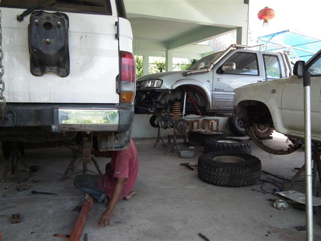 ชักแกนตัวส่งกำลังก้ามปูออกแล้วไปทำเกลียวที่โรงกลึง