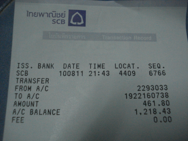ผมโอนทางตู้ไปให้แล้ว ตอนเช้า วันที่ 9 ส.ค.54