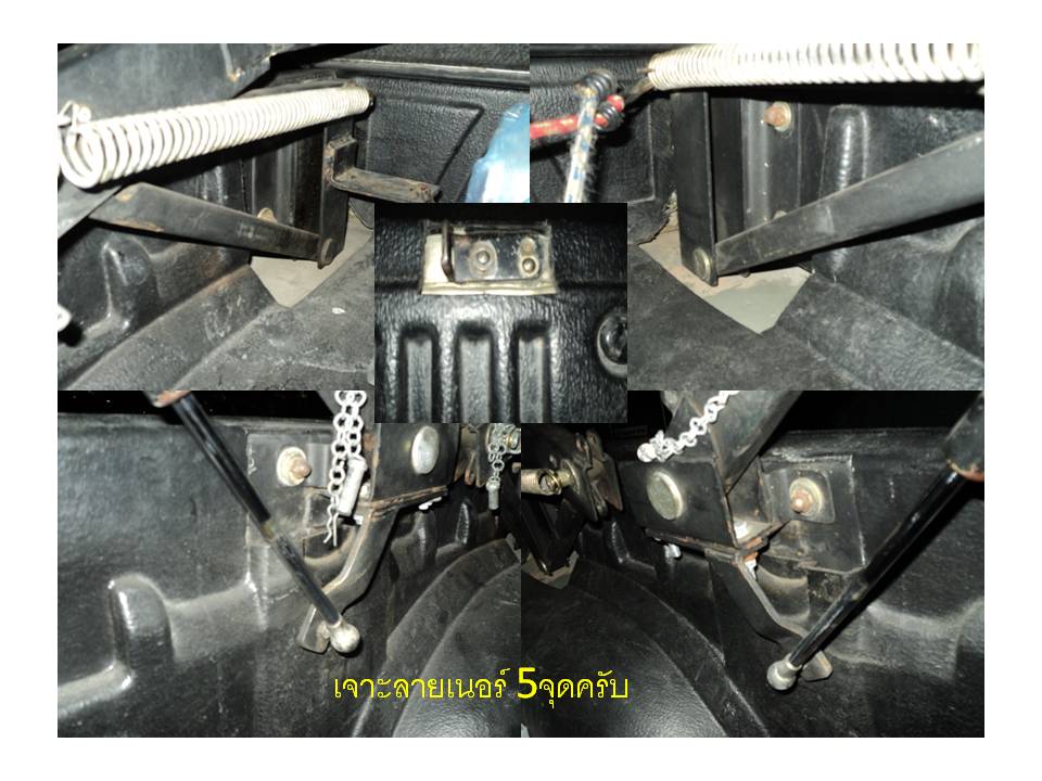 ต้องเจาะรูยึดแล้วใช้สายสลิงดึงไปด้านหลังครับถ้าไม่ดึงล้อสีขาดหมดครับ