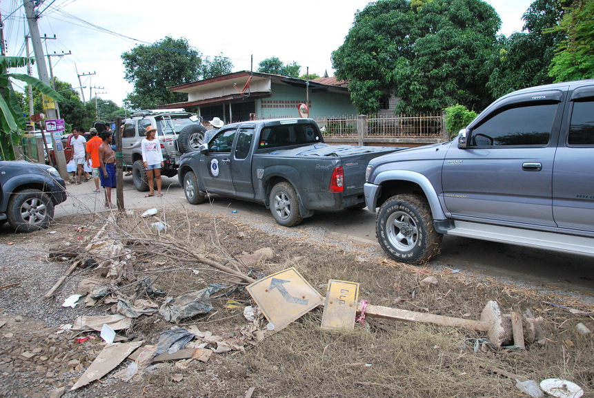 เอ้าล้อหมุนมาแจกของตามหมู่บ้านมั่ง.... สังเกตร่องรอยความรุนแรงของ "น้ำ" ครับ.....