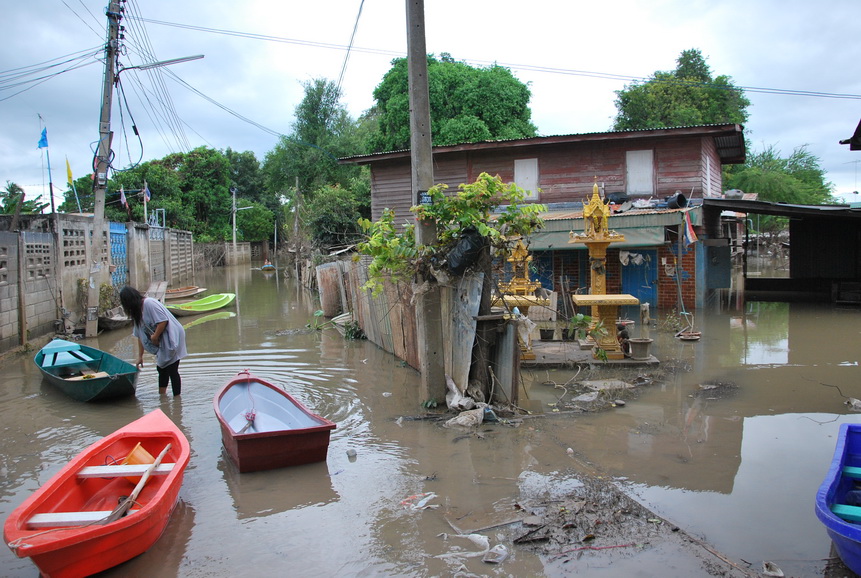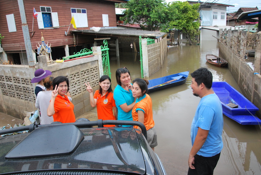 น้ำที่ยังท่วมขังอยู่...ทำให้ชาวบ้านไปรวมตัวกันที่วัดสะตือได้ไม่ครบ พวกเราก็เลยไปถึงที่กันเลยครับ