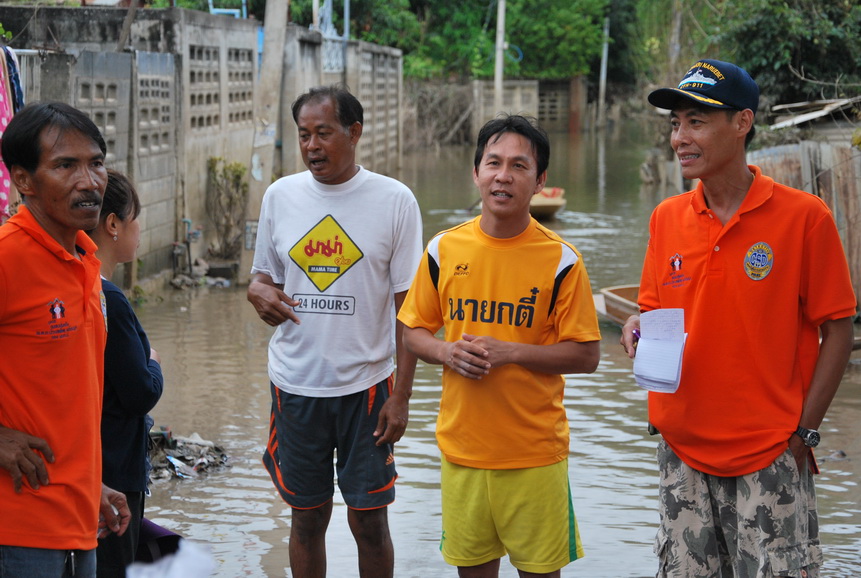 ประชุมกันว่าจะเอาไงกับของดี จะเอารถลุย หรือ จะส่งแนวหน้าลงเรือไปดี ผมออกตัวไว้ก่อนว่าไม่ลงไปครับ ไม่ใช่กลัวน๊ะ แต่ถ้าลงไปเรือคงบรรทุกของบริจาคไปไม่ได้แน่ (ผมหนักตั้งเกือบ 90 โล)