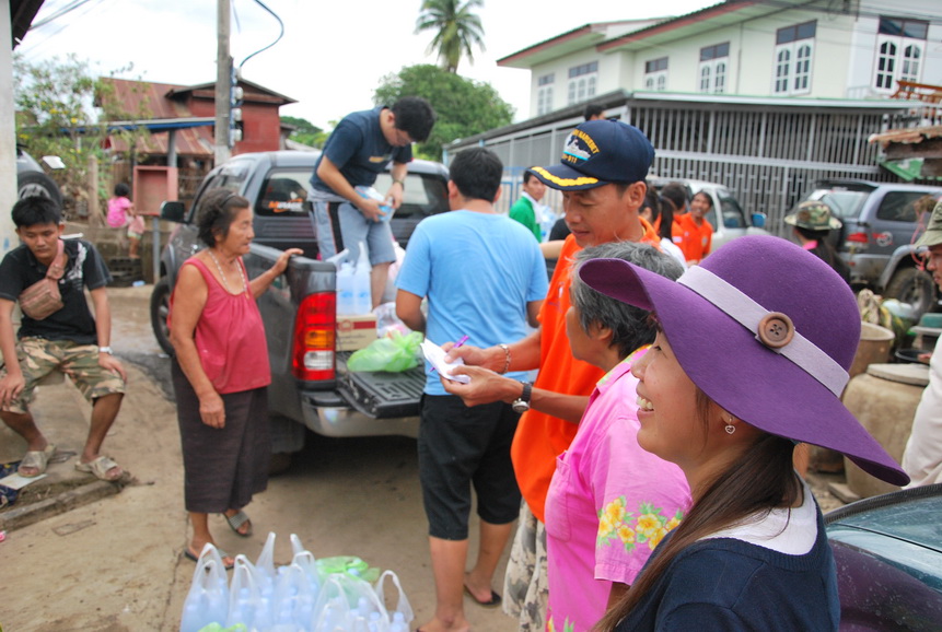 พี่ป้อม มอบถุงยังชีพให้แก่ผู้ประสบภัยครับ (ขออนุโมทนากับผู้บริจาคถุงด้วยน๊ะครับ)