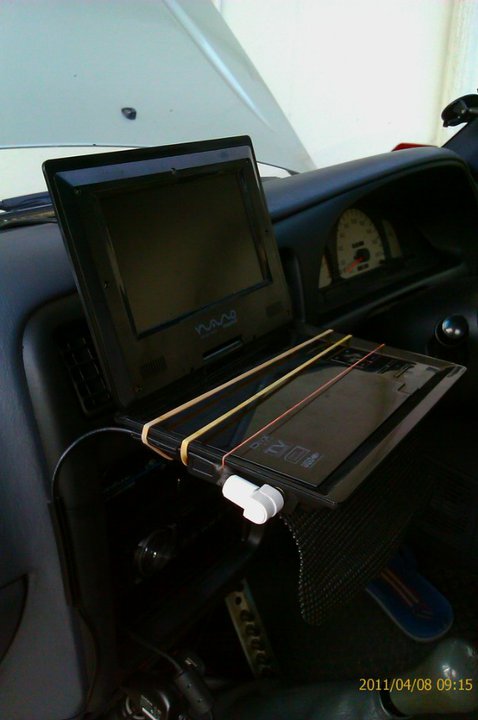 ของผมซื้อDVDแบบมีจอที่โลตัสขายมาวางบนที่วางแก้วน้ำครับ ประหยัดดี