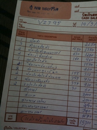 ซึ่งอะใหล่ทั้งหมด 13 รายการรวมเป็นเงิน หมื่นกว่าบาท ลองคิดดูว่าโดนไปเท่าไรค่าแรงก็ไม่ต่างจากศูนย์สักเท่าไรเลย เฮ้ออ