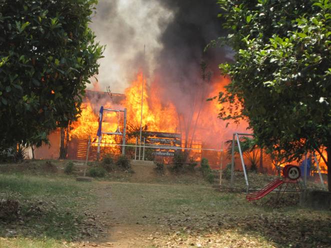ด้วยโรงเรียน กศน.บ้านห้วยกุ๊บกั๊บ ต.กึดช้าง อ.แม่แตง จ.เชียงใหม่ ซึ่งอยู่ในพื้นที่โครงการขยายผลโครงการหลวงที่ผมรับผิดชอบอยู่ ได้ถูกไฟไหม้เสียหายทั้งหลัง ขณะนี้ตำรวจท้องที่ยังไม่แจ้งสาเหตุว่าเพราะอะไร แต่ที่สำคัญคือเด็กๆไม่มีที่เรียน สมาชิกกลุ่มใด/ท่านใด พอมีกำลังช่วยเหลืออะไรก็ได้ครับ หรือจะขึ้นไปดูสภาพด้วยกันก็ได้ หมายเลขโทรศัพท์ 081-952911(ลุงดาบ) หรือ ติดต่อที่ครูจรัญ ได้โดยตรงเลยครับที่เบอร์ 081-9600707