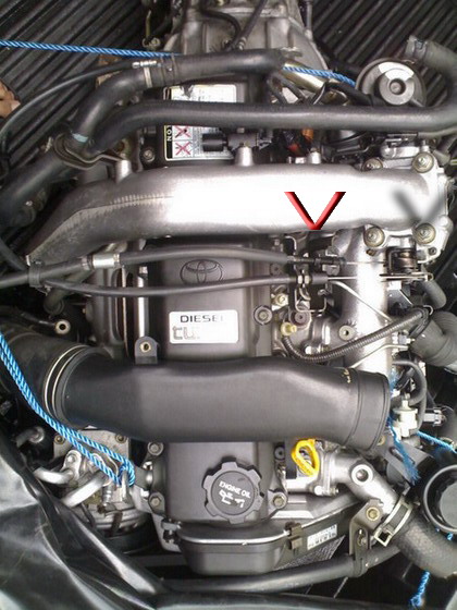 สำหรับ ตัวนี้ ไม่มีลูกรอก ดึงลิ้นปีกผีเสื้อแล้วครับ ...ใช้ Servo Motor หมุนแทน (ตำหแหน่งที่ Mark 'V' ไว้) ...สังเกตุ จะไม่มีสายสลิงวิ่งมาแล้ว มีเพียงปลั๊กสายไฟเสียบแทน (...ภาพนี้ KZ - TZ 2000 Inter Cooler น้ำ วางใน Hi-ace ครับ หน้าตาเลยแปลกๆ หน่อย)