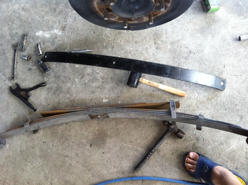 ประกอบเรียงใหม่เอาแผ่นบรรทุกตัวล่างสุดสั้นๆออก และเสริมแผ่นAdd ที่3เขาไป เปลี่ยนยางรองแผ่นแหนบ เปลี่ยนบูธยางหูโตงเตง