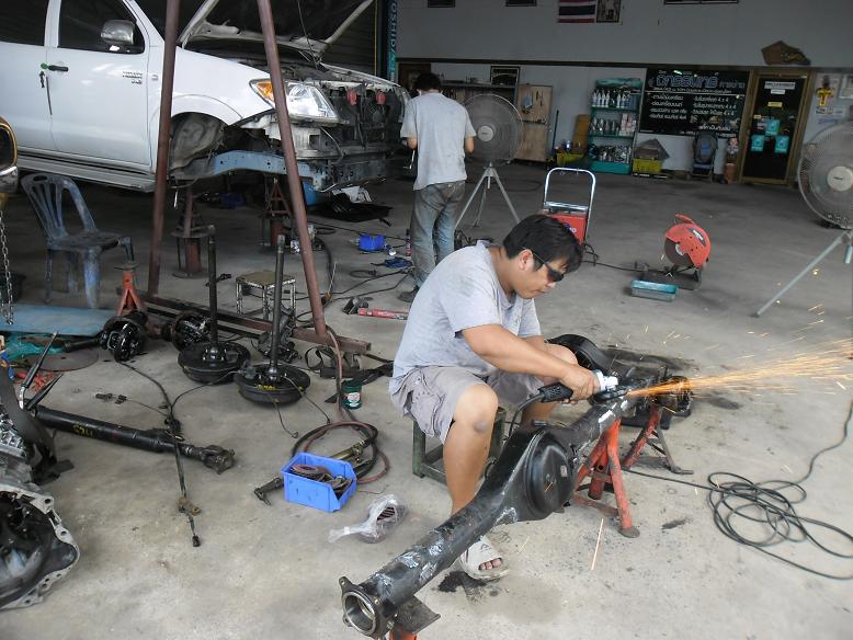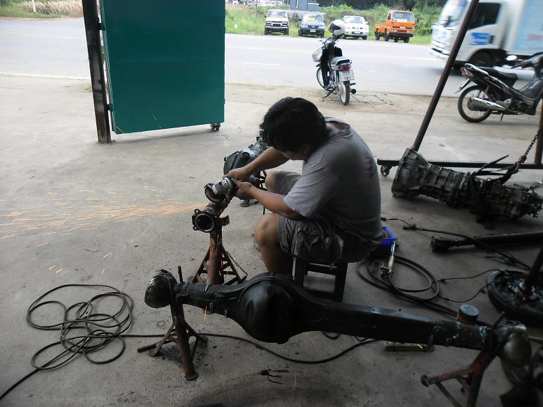 เพลาหน้าหลัง เกียร์เสื้อใหญ่โพใหญ่ ก้มากองรออยู่ ช้าอยู่ใย ก็จัดการรื้อเป่าไฟแล้วก้เหลาให้เกลี้ยง
