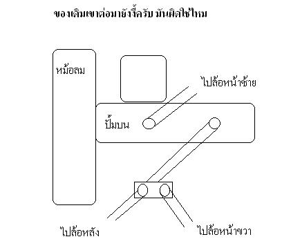 แล้วล้อหน้าไปต่ออยู่กับท่อของล้อหลัง (คือล้อหลังทั้ง 2 ล้อมันต่ออยู่กับล้อหน้าขวา ส่วนล้อหน้าซ้ายต่ออยู่กับท่อน้ำมันของล้อหลัง อันนี้ผมต่อตามของเก่า)(มันน่าจะต่อผิดมานานแล้ว)