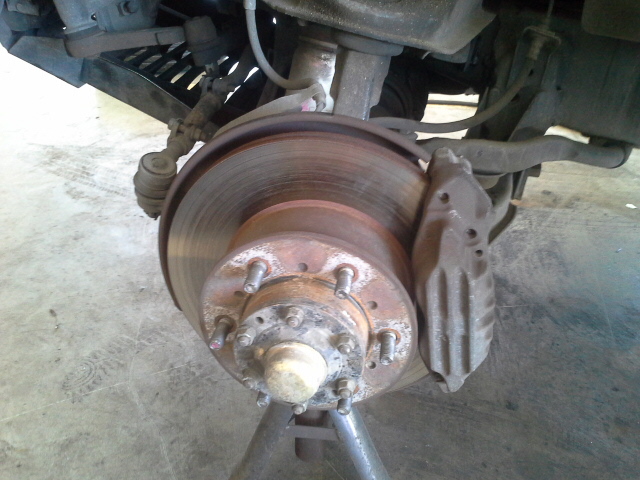 เจอแล้วครับหลังจากรวบรวมข้อมูลจากพี่ๆ เริ่มจากต้นเหตุเลยครับ เบรคหน้าช่างถอดออกดู แล้วพบว่าผ้าเบรคกินจานต้องเจียรใหม่(ทั้งๆที่พึ่งจะเจียรไป)