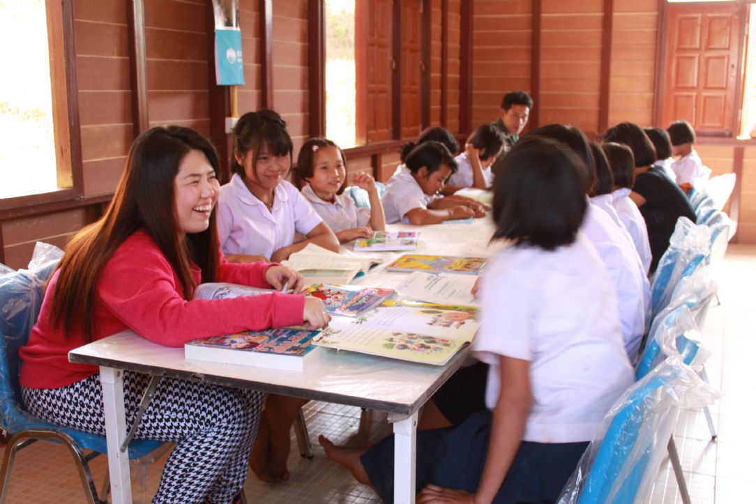 ส่งมอบห้องสมุด หนังสือ ชั้นวางหนังสือ โต๊ะ เก้าอี้ และจัดงานวันเด็ก