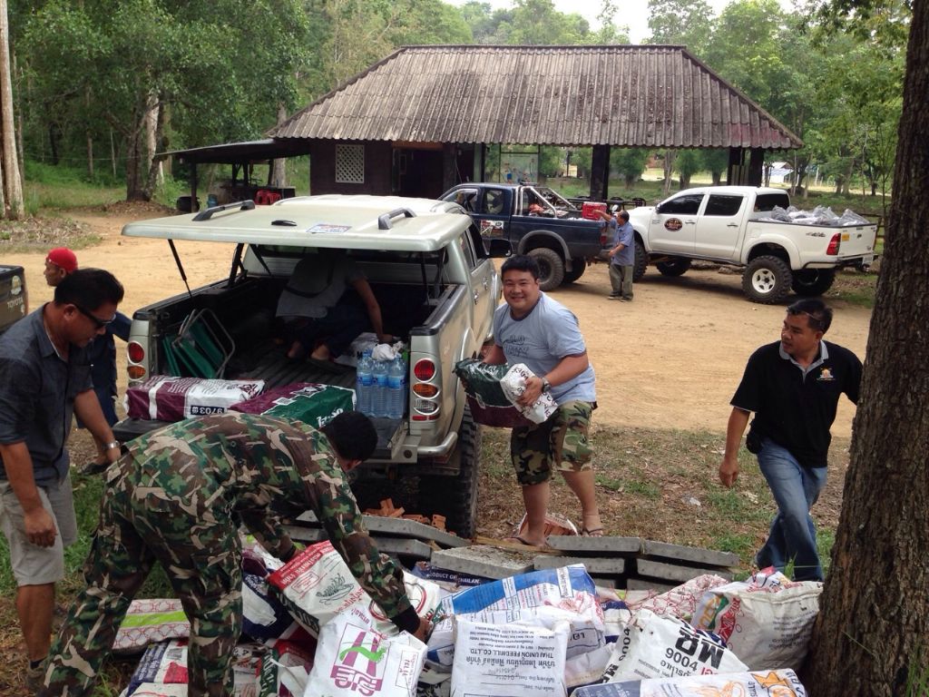 ช่วยกันขนของขึ้นรถ มีเครื่องเชื่อม อิฐแดง กระเบื้อง