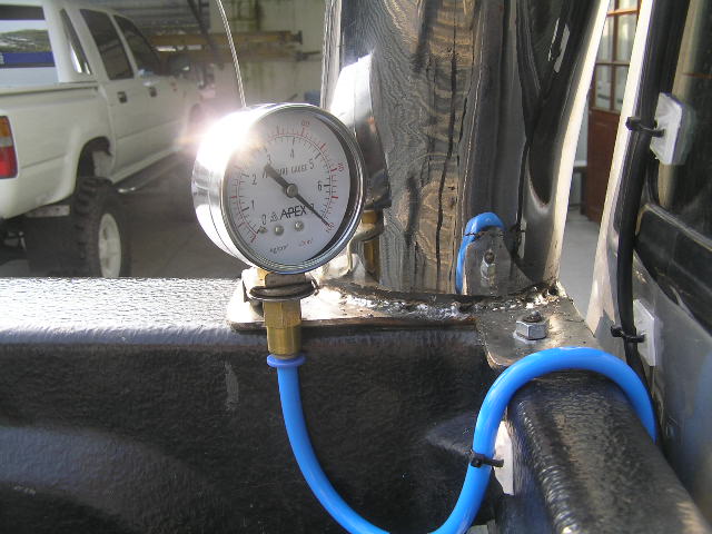 -ตอนผมทำหาซื้อท่อลม เจอเกรดเดียว ไม่มีตัวเลือก ทนแรงดันได้ 120 ปอนด์(พิมพ์ไว้ที่ท่อ) ในรูปก่อนผมใช้เกจ์ 100 ปอนด์ ก็เก็บลมเต็มสเกล ตอนนี้เปลี่ยนเป็นเกจ์ 145 ปอนด์ เก็บลม 110 ปอนด์ หย่อนจากความสามารถของท่อไว้หน่อย แต่จริงๆอยากเก็บ 120-130 ปอนด์ ประมาณ 15 นาที เกินกว่านั้นปั๊ม 7 ครีบ จะร้อนมากจนน่าห่วง ตอนนี้อัดลมใส่ถังราวๆ 25-30 ลิตรใช้เวลา 10 นาที ปั๊มก็ร้อนระดับมือจับได้ครับ