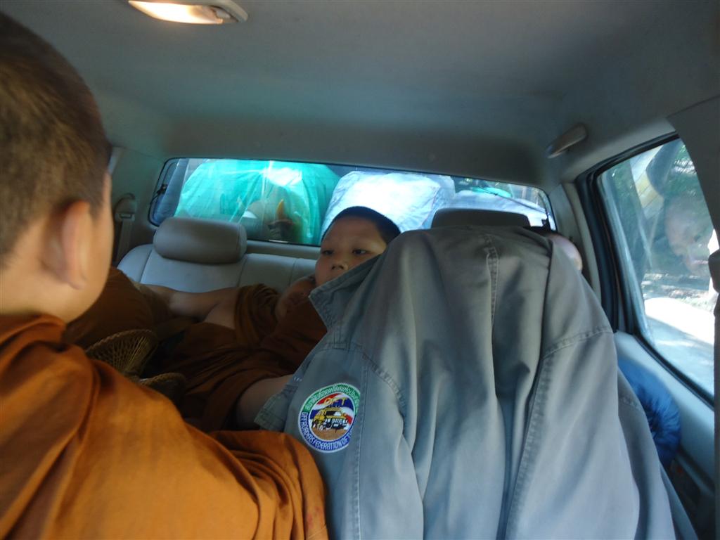 08.00 ออกเดินทาง รับญาติโยมและสิ่งของร่วมทำบุญ วัดขนุนคลี่