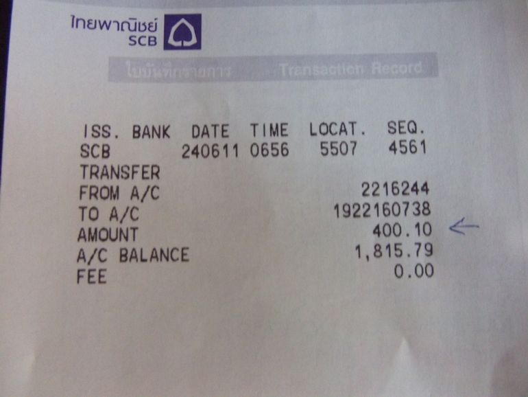 พี่ครับผมโอนเงินให้แล้วนะครับ เมื่อเช้านี้