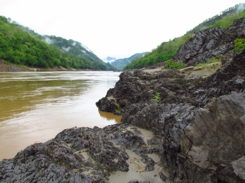 แม่น้ำสาละวินในหน้าน้ำหลาก มองจากหน่วยลงไป ความสูงจากหน่วยถึงแม่น้ำ 2 เหนื่อย(เดินขึ้น 1 เดินลง 1)